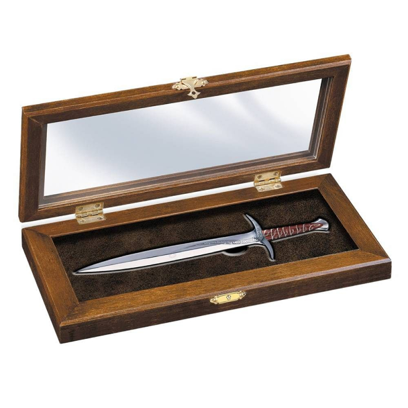 Jeho ostří mírně zářilo, když se nablízku nacházeli skřeti. Později pak Bilbo daroval Žihadlo svému synovci Frodovi. Zmenšená replika Bilbova meče - Žihadla z filmu Pán prstenů. Žihadlo byl původně elfský nůž, ukovaný v Prvním věku v Gondolinu, svou velikostí však hobitovi posloužil jako krátký mečík. Nůž je dlouhý 19,5 cm, součástí je dřevěná krabička (25 x 9 x 3 cm). Velice věrná replika, která potěší všechny fanoušky Pána prstenů.